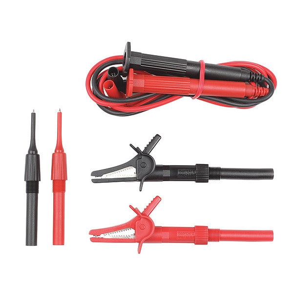 Deluxe Fused Test Lead Kit, Right Angle Banana Plug, 47.9", Red, Black