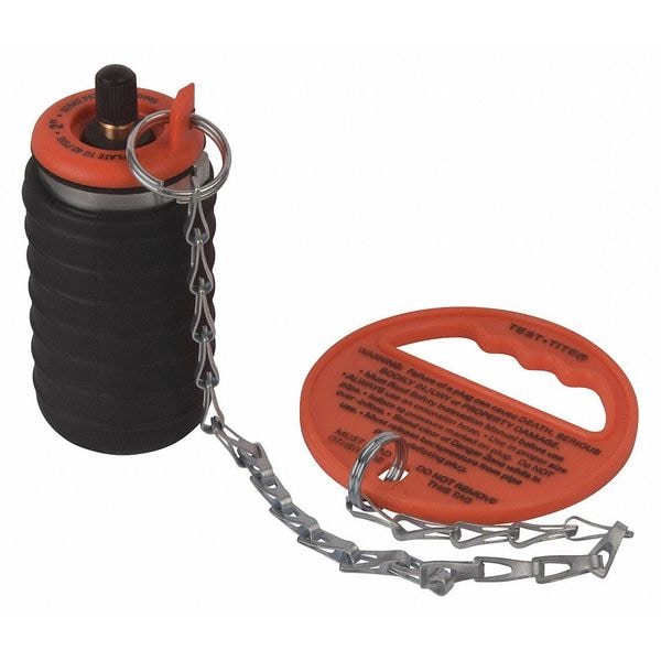 Test Plug, Air Connection Gender Male, Air Connection Size 1/4 in, Air Connection Type NPT, Body Surface Style Textured, Bypass Connection Size Not Applicable, Bypass Connection Type Not Applicable, Bypass Thread Gender Not Applicable, Deflated Diameter 1.78 in, Deflated Length 3 in, For Maximum Pipe Inside Diameter 2 in, For Maximum Pipe Size 2 1/4 in, For Minimum Pipe Inside Diameter 2.05 in, For Minimum Pipe Size 1 3/4 in, Head Tether Connection Handle and Chain, Inflated Length 5.38 in