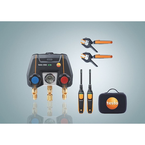 - testo 550i Smart Kit contains: app-controlled digital manifold testo 550i incl. Bluetooth and 2-way valve block, 2 x wireless clamp thermometer testo 115i (Bluetooth, NTC), 2 x wireless thermohygrometer testo 605i, transport case