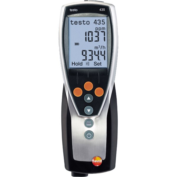 The Testo 435-4 multifunction meter is perfect for monitoring, analyzing, and diagnosing indoor air quality, wherever you need to take important IAQ measurements. In addition, you can easily pinpoint and troubleshoot problems with HVAC systems, and immediately see the results of corrections. Commissioning, validating, benchmarking, or simpy adjusting HVAC systems are all easy with the Testo 435-4. The Testo 435-4 multifunction meter allows you to carry out all the measurements that are necessary to check and adjust ventilation and air conditioning systems, and to assess the quality of indoor air. The 435-4 accepts a wide variety of probes to measure and record airflow, humidity, temperature, and indoor air quality (IAQ) readings. With the included ComSoft Software, this data can be organized by location, analyzed, and reported. Probe dependent menus and selectable user profiles ensure that the Testo 435-4 multifunction meter is always ready to use. Easy setup of user defined IAQ and airflow / duct profiles allows for fast measurement of many different tasks, and with a wide variety of probe choices available, the Testo 435-4 is ready to handle a vast array of HVAC / IAQ applications. The superb data handling will keep your readings organized and ready, however you need them, whether in a quick printout on-site, or for further analysis for placement into a report. Testo 435-4 highlights: -Integrated differential pressure measurement for flow, and monitoring HVAC -Data recording up to 10,000 readings -ComSoft PC Software for analyzing, archiving, and documenting data -Wireless or cable humidity probes -Optional light (Lux) probe -Optional comfort level probe