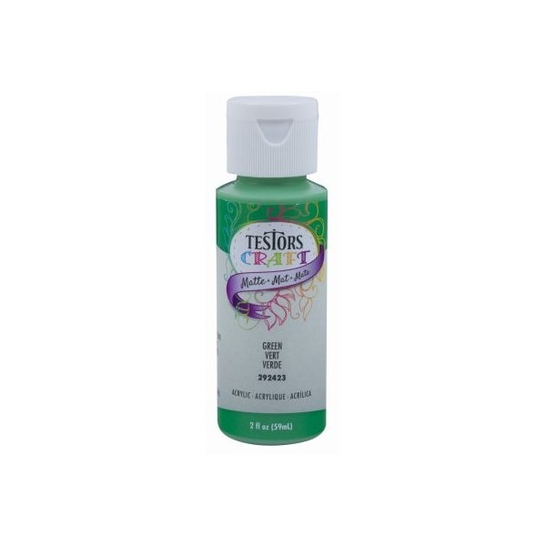 Testors, 2 OZ, Green, Matte Acrylic Craft Paint, High Quality Water Base Paints For General Craft Decorative Painting, Great Coverage On A Variety Of Surfaces Such As Wood, Metal, Fabric, Canvas, Ceramic, Glass More, Permanent NonToxic, Soap Water Cleanup While Wet, Squeezable Bottle, Easy Pour Flip Cap, Dries To A Beautiful Durable Permanent Finish
