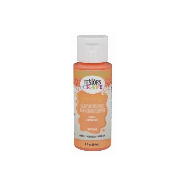 Testors, 2 OZ, Orange, Fluorescent, Acrylic Craft Paint, High Quality Water Base Paints For General Craft Decorative Painting, Great Coverage On A Variety Of Surfaces Such As Wood, Metal, Fabric, Canvas, Ceramic, Glass More, Permanent NonToxic, Soap Water Cleanup While Wet, Squeezable Bottle, Easy Pour Flip Cap, Dries To A Beautiful Durable Permanent Finish
