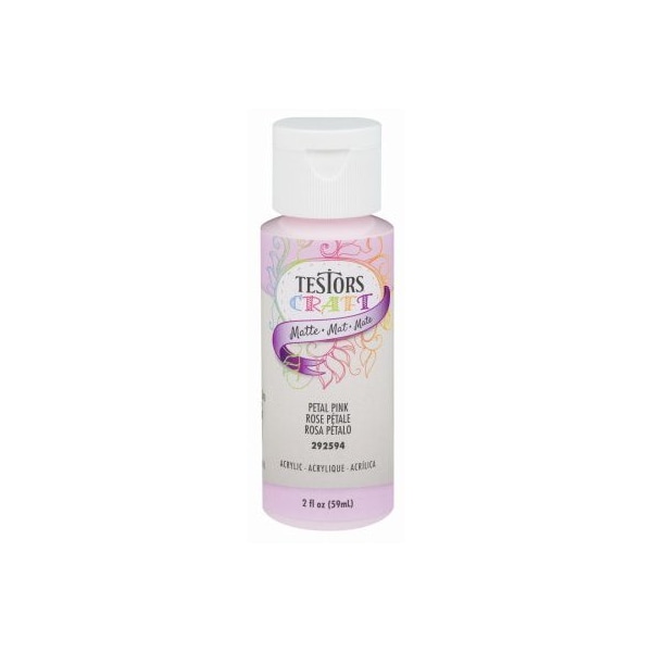 Testors, 2 OZ, Petal Pink, Matte Acrylic Craft Paint, High Quality Water Base Paints For General Craft Decorative Painting, Great Coverage On A Variety Of Surfaces Such As Wood, Metal, Fabric, Canvas, Ceramic, Glass More, Permanent NonToxic, Soap Water Cleanup While Wet, Squeezable Bottle, Easy Pour Flip Cap, Dries To A Beautiful Durable Permanent Finish