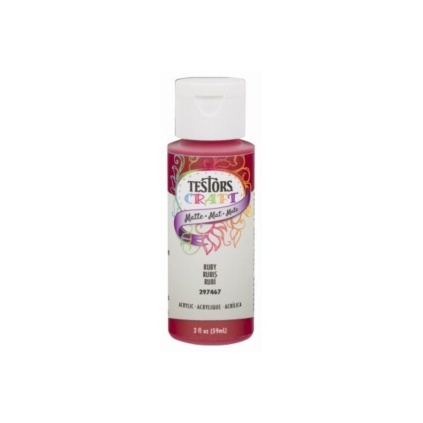 Testors, 2 OZ, Ruby, Matte Acrylic Craft Paint, High Quality Water Base Paints For General Craft Decorative Painting, Great Coverage On A Variety Of Surfaces Such As Wood, Metal, Fabric, Canvas, Ceramic, Glass More, Permanent NonToxic, Soap Water Cleanup While Wet, Squeezable Bottle, Easy Pour Flip Cap, Dries To A Beautiful Durable Permanent Finish