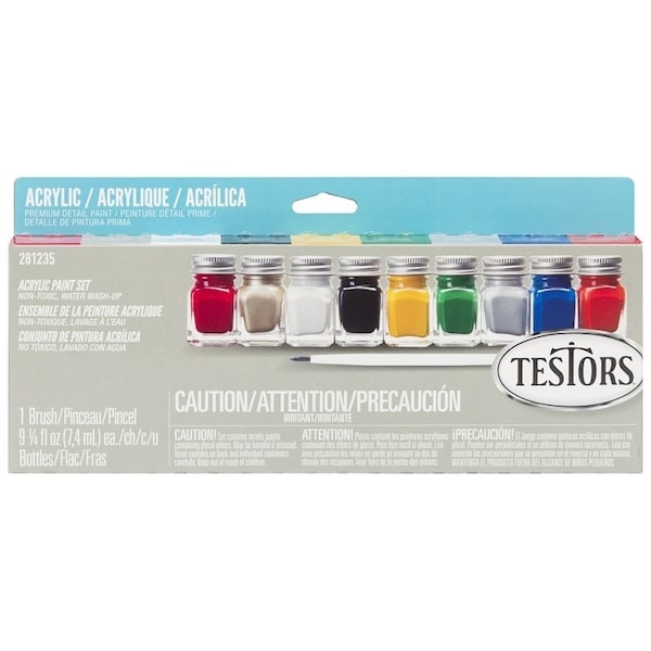 Testors acrylic paint sets are the perfect gift item for casual and younger modelers and hobbyist These quality paints in the tiny bottles are also great for school and scout projects, craft projects, wood working just about anything that requires painting Testors acrylic paints are fast drying, nontoxic, easy water washup and low odor Testors offers a wide variety of acrylic paint sets for different applications