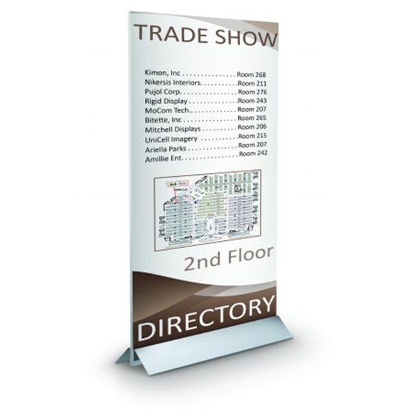 Display graphics and attract buyers with single or double sided graphics, accommodates up to 1" thick substrates. Create matching holes in graphics or use without holes holding graphic above the carrriage bolts. Extremely sturdy as all the weight is centered on the floor, 3-1/2" height off floor, 9" front to back.
