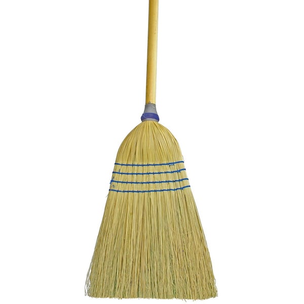 All-Corn Upright Household Broom, Clear Lacquered Hdl, 12PK