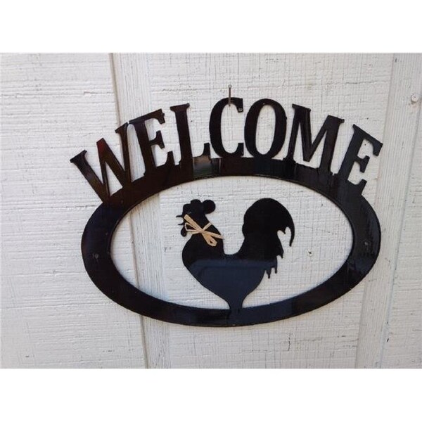 The Lazy Scroll roosterwelcome Rooster Metal Welcome Sign