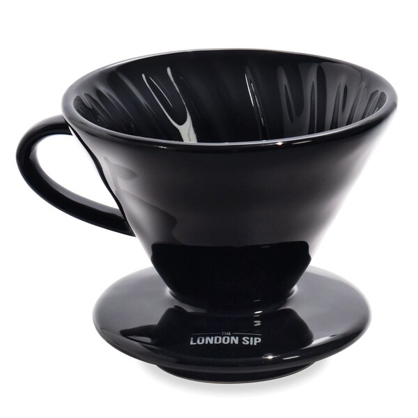 The London Sip Ceramic Coffee Dripper is the ideal ceramic pour-over coffee dripper manual coffee brewer to allow you to enjoy great pour-over coffee at home or on the go. The dripper is crafted from quality ceramic that is resistant to thermal shock and retains heat to prevent temperature loss during the brewing process. The ceramic construction will not impart any flavors into your coffee like other materials can for a great tasting cup of coffee every time. The coffee dripper is extremely easy to use, does not require a specialty filter, and cleanup is a snap. The large base of the dripper easily sits on your cup or to-go mug; place the filter in the dripper, add coffee, and pour hot water over the grounds. When the brewing process is complete you simply throw away the filter, rinse out the dripper, and enjoy your coffee. The London Sip 1- to 2-Cup coffee dripper is an ideal addition to your morning coffee routine, allowing you to brew a great pour-over coffee directly into your cup. It's ideal for those who only need to make enough coffee for 1 or 2 servings.