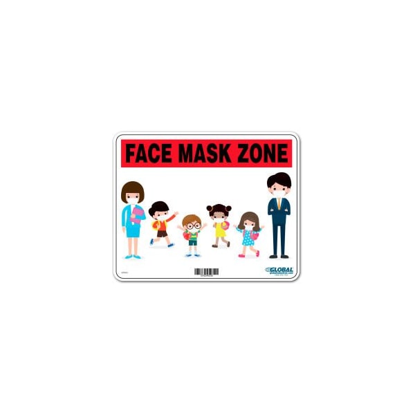 GEC 8482; Face Mask Zone Sign, 10"W x 8''H, Plastic