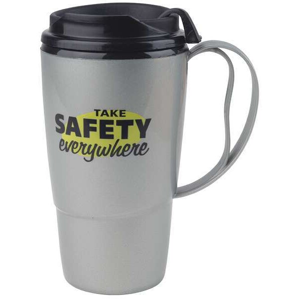Insulated Travel Mug, Message Take Safety Everywhere, Color Silver w/Black Trim and Lid, Material Copolymer, Size 16 oz