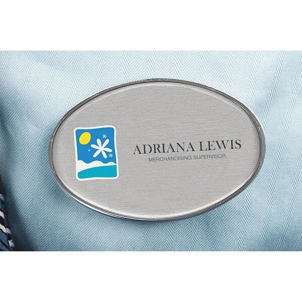 Badge, Inkjet, Number Series Blank, Material Steel, Color Silver, Length 2-39/64 In., Width 1-45/64 In., Height 0.02, Legend Blank, Includes NPG Software, Package Quantity 10