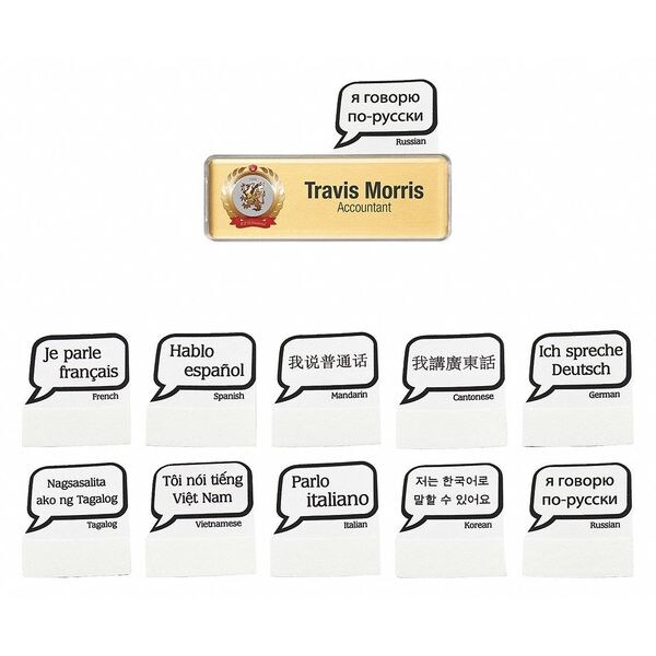 Badge, Language, Number Series Blank, Material Steel, Color Brass, Length 3 In., Width 1 In., Height 0.025, Legend Blank, Includes NPG Software, Package Quantity 10