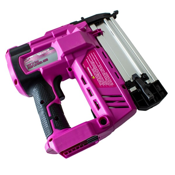 Tackle a variety of projects with ease and confidence with this 20-Volt Lithium-Ion Cordless Brad Nailer/Stapler by The Original Pink Box. With both nailing and stapling functions, this powerful tool is perfect for any job from carpentry to upholstery. It's equipped with a magazine that holds up to 100 nails/staples, quick release feature for easy installation, dual mode switch that alternates between single firing and contact firing modes, non-slip grip handle for comfortable use, and a built in LED light to help you get the job done right. And, its firing speed is up to 60 nails/staples per minute! Whether you're a beginner or experienced DIY enthusiast, this brad nailer/stapler offers what you need to complete your project with confidence. Brad nails and staples not included. Compatible only with The Original Pink Box line of 20V Li-ion batteries not included. Get the job done in style with The Original Pink Box!