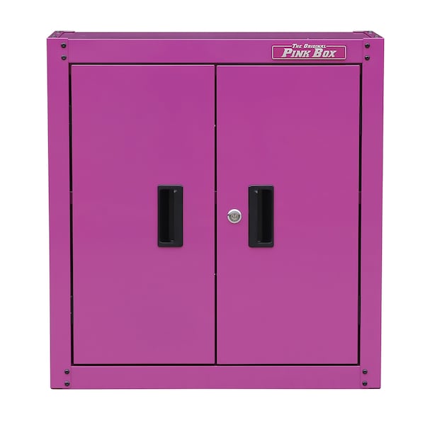 This 2-door wall cabinet from The Original Pink Box is perfect for safely storing a variety of supplies and equipment without taking up valuable floor space. The steel construction and powder-coated finish ensures lasting quality, while the magnetic closures and cam lock keep your belongings secure. With one adjustable shelf, you can customize your storage space to suit your needs.