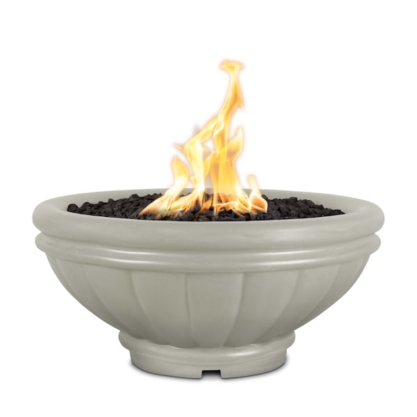 24 Round Roma Fire Bowl - GFRC Concrete - Ash - Low Voltage Electronic Ignition - Liquid Propane