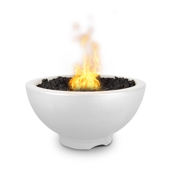 38 Round Sonoma Fire Pit - GFRC Concrete - White - Low Voltage Electronic Ignition - Liquid Propane