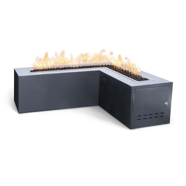 48 L-Shaped Whitney Fire Table - Powder Coated Metal - Gray - Match Lit - Liquid Propane