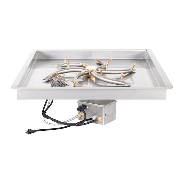 48x48 Square Drop-in Pan and 36 Brass Triple 'S' Bullet Burner - Low Voltage Electronic Ignition