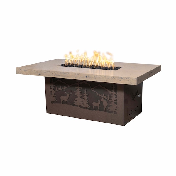 60 x 36 Rectangle Outback Fire Pit - Deer Country Design - Match Lit with Flame Sense System - Rustic White Concrete Top - Corten Steel Base - Liquid Propane