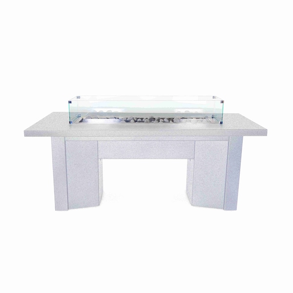 78 Rectangular Alameda Fire Table, Powder Coated Metal, White, Liquid Propane
