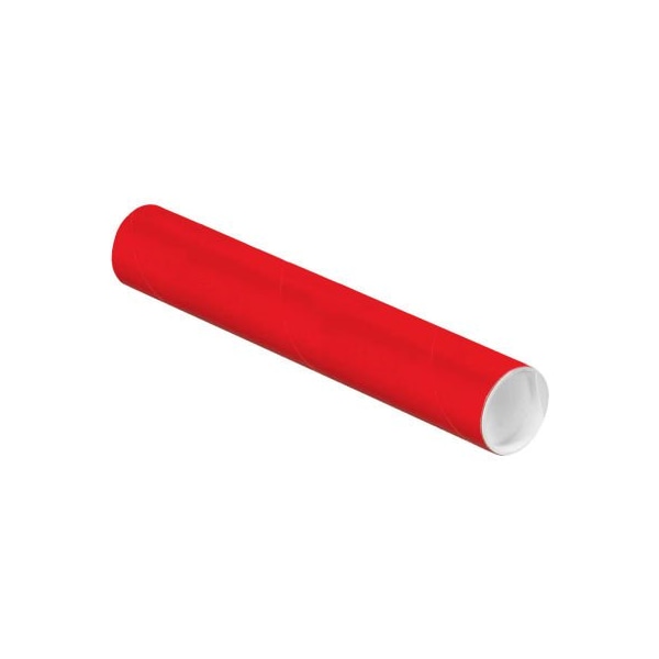 Colored Mailing Tubes With Caps, 2" Dia. x 12"L, 0.06" Thick, Red, 50/Pack