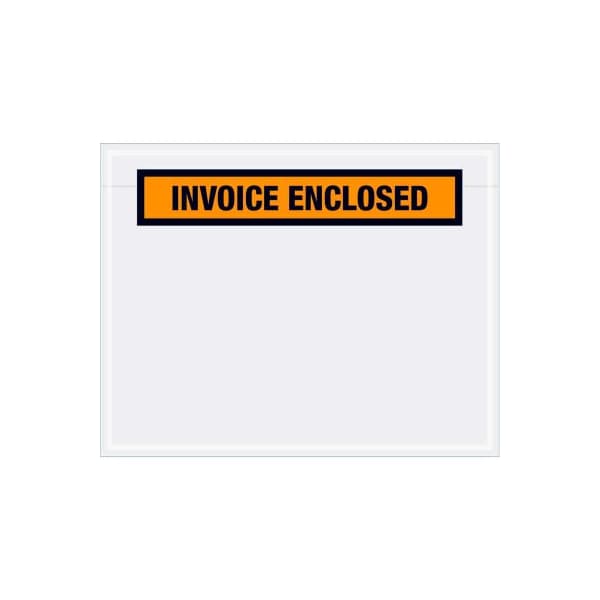 These pressure sensitive packing list envelopes secure and protect documents that are attached to the outside of shipments. pre-printed with "invoice enclosed" on heavy, 2 mil poly hot melt adhesive backing provides strong adhesion to paper and corrugated products envelopes open along the first dimension