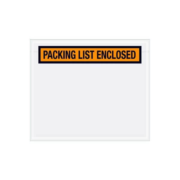 These pressure sensitive packing list envelopes secure and protect documents that are attached to the outside of shipments. panel face, colored packing list envelopes are pre-printed with "packing list enclosed" on heavy 2 mil poly hot melt adhesive backing provides strong adhesion to paper and corrugated products envelopes open along the first dimension