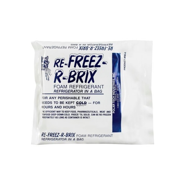 Re-Freez-R-Brix Cold Bricks, 7.5 Oz., 4-1/2"L x 4"W x 3/4"H, White/Blue, 42/Pack