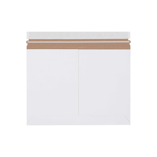 These strong chipboard mailers protect photos and documents during shipping. features: manufactured from white chipboard lightweight to save on postage no additional stiffeners needed sideloading style makes inserting and retrieving documents easier peel and seal closure pull tab tear strip for easy opening the dimensions provided are the outside dimensions of the product