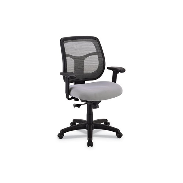 The Apollo is a perennial favorite, combining value, comfort, adjustability and quality, and featuring a breathable, color coordinated mesh back that matches the comfortably contoured and padded waterfall seat. Tilt tension control. 2.8in ratchet back height adjustment. Recommended Application Areas: Conference & Meeting; General Office & Task; Seat Color: Silver; Back Color: Silver; Color Family: Silver.