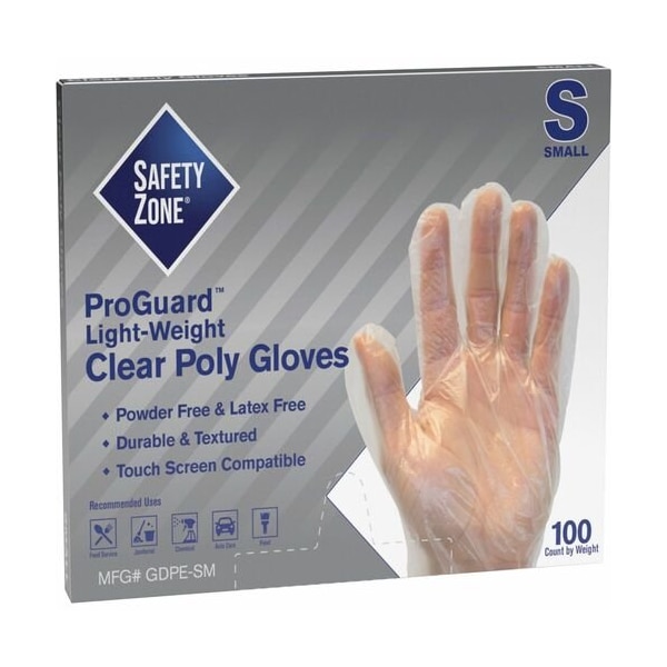 The Safety Zone Gloves, High-density Poly, Latex-free, Small, 100/BX, Clear GLOVE,POLY,HIGH DENSITY,A