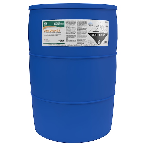 Biodegradable cleaner, degreaser and deodorizer, combines the power of butyl with pure Valencia orange oil. Safe for use on virtually all hard surfaces. Container 55 gal Drum.