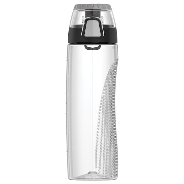 The new 24-Oz. Plastic Hydration Bottle with Meter by Thermos gives you the flexibility to choose what matters most. Nothing is more vital to staying healthy and fit than proper hydration, and this hydration bottle make it easy. It's made of BPA-free materials that are reusable and built to last. Incorporated into the lid is a rotating intake meter to monitor your daily water consumption. With an ergonomic design that is comfortable to grip and a flip up carrying loop, this Clear hydration bottle is great for long walks, workouts, the ride to work, or wherever life takes you.