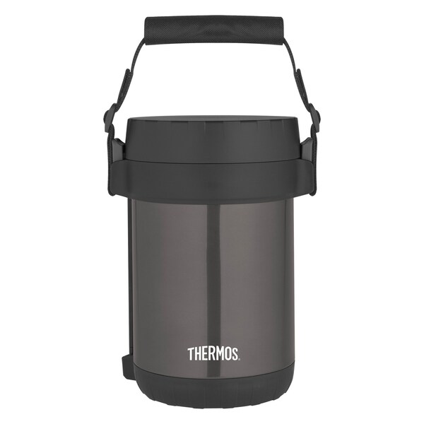The All-in-1 Meal Carrier from Thermos is secure' strong' and convenient. From the start' you'll see how easy it can be to eat healthy while on the go. It keeps meals hot for up to 16 hours. Maybe you want a real meal in a hurry' or ideally portioned snacks throughout the day. Either way' your food is temperature controlled and sealed for freshness. It conveniently holds 3 separate microwaveable containers' and also includes a full-size stainless steel spoon in a plastic cover. This vacuum-insulated meal carrier is BPA-free.