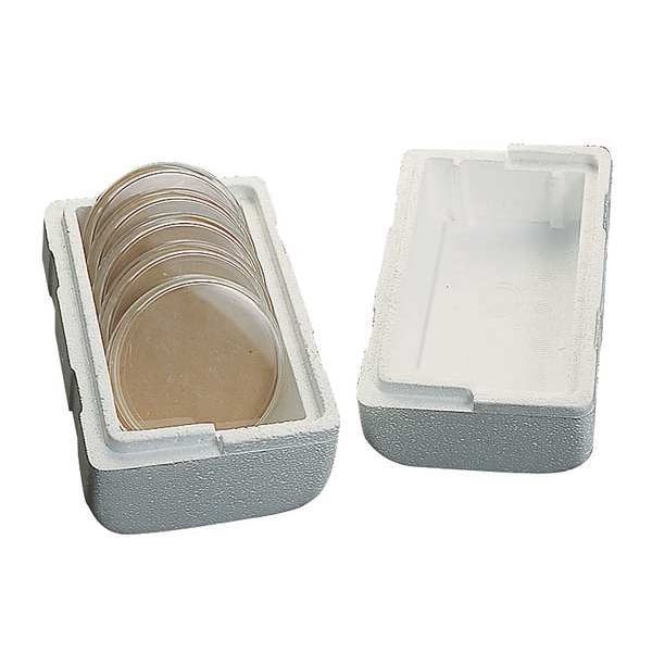 Petri Dish Mailer, Outside Height - English 5 in, Inside Length - English 6 1/4 in, Inside Height - English 4 in, Holds Container Style Petri Dish, Holds Number of Tubes Not Applicable, Holds Number of Slides Not Applicable, Holds Maximum Tube Diameter Not Applicable, Holds Maximum Tube Length Not Applicable, Holds Slide Length Not Applicable, Holds Slide Width Not Applicable, Material Polystyrene, Color White, Standards DOT, IATA, Outside Length - Metric 190.5 mm, Board Test 32 ECT