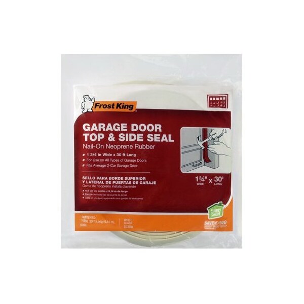 30', Vinyl Strip, White, Garage Door Weather Seal, Extruded Vinyl, Designed To Seal The Sides Top Of Overhead Garage Doors, Includes Nails