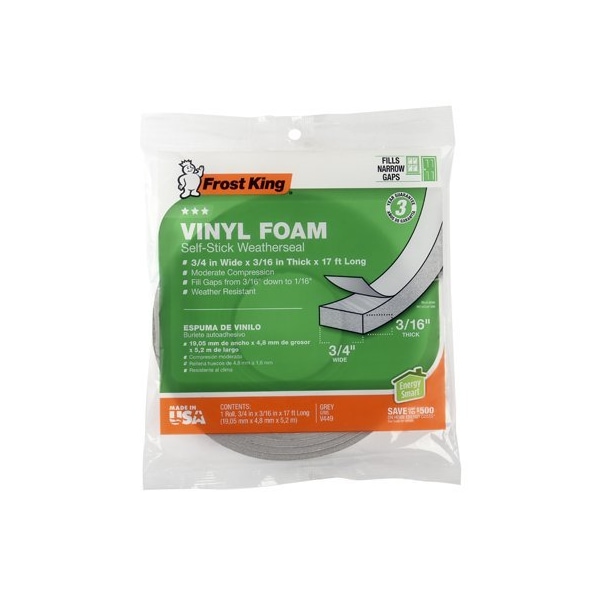 34 x 316, 17' Gray Vinyl Foam WeatherStrip Tape