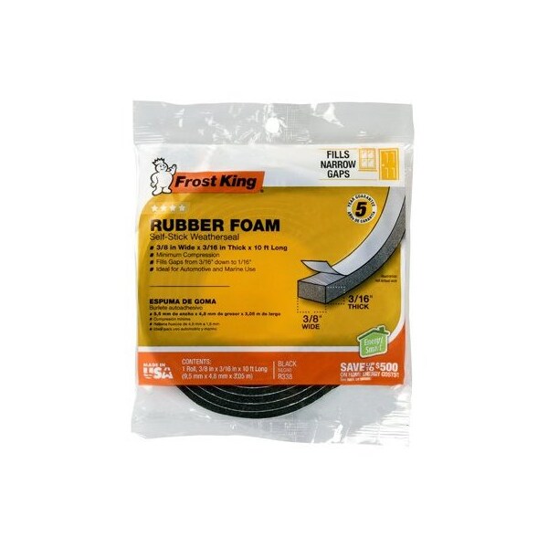 38 x 316, 10' High Density, Black Foam WeatherStrip Tape, Self Stick, Compressible To Fill Gaps On Windows Doors, Can Also Be Used As A Seal Around Air Conditioners, As A RefrigeratorFreezer Door Gasket, To Prevent Rattles, Squeaks Vibrations On Cars Trucks, Poly Bag