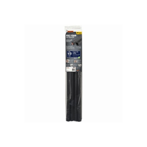 Thermwell Products, 4 pack, 3 ft black tubular polyethylene foam pipe insulation Non Self Sealing, Preslit, 12 in wall thickness, for use on 12 in copper pipe or 14 in iron pipe