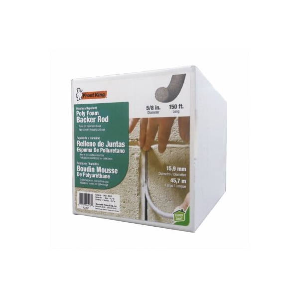 Contractor pack 5/8-in. x 150-ft caulk saver comes in a convenient dispenser box for easy use. The 5/8-in. diameter moisture repellent backer rod fills large gaps. Saves money on using expensive caulks.