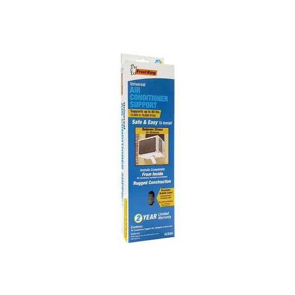 Light Duty, Steel Universal Air Conditioner Support, Installs Completely From Inside, Supports Up To 80 LB Or 5,000 To 10,000 BTU's, Safe Easy To Install, Secure Long Lasting, Precision Bubble Level, Assures Proper Mounting Angle, Relieves Stress On Window, Rugged, All Weather Construction
