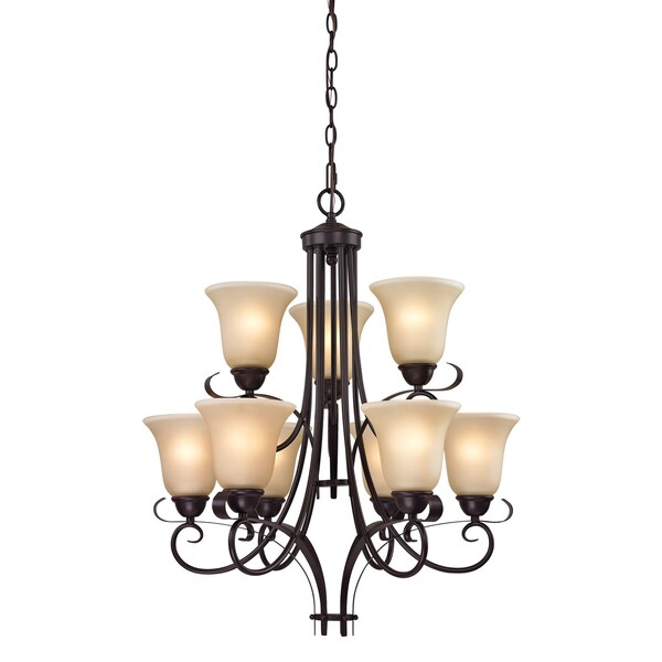Brighton 9Light Chandelier in Oil Rubbed Bronze with Amber Glass (Discontinued)