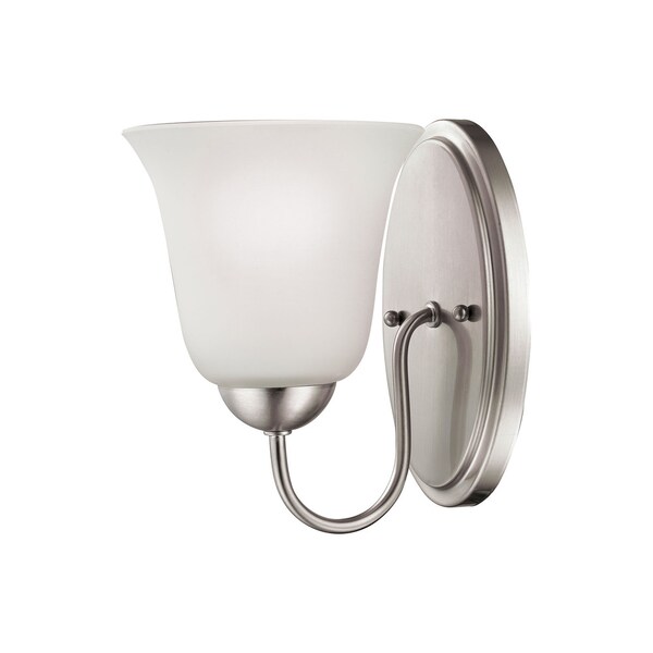 Conway 1-Light Bath Bar in Brushed Nickel with White Glass (Discontinued)
