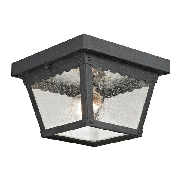 Springfield 2-Light Flush Mount in Matte Textured Black with Seeded Gl (Discontinued)