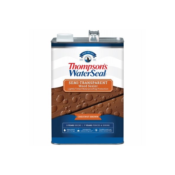 Gallon, Chestnut Brown, SemiTransparent, Wood Sealer, Stain, All In 1, Prevents Water Damage, Advanced Polymers Provide Fade Resistant Color, Resists Mildew, Up Damage, 1 Coat Coverage Dries To The Touch Within 2 Hours, Covers 150 To 400 SQFT Per Gallon