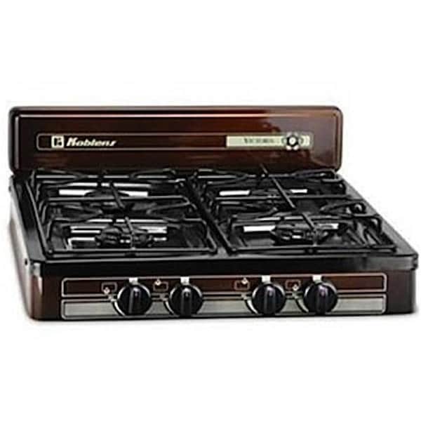 Convenient and reliable Koblenz 4-Burner Stove is a trustworthy choice for almost any social outdoor activity including camping hunting tailgating and backyard cookouts. The fuel is long lasting as well: with just a single standard LP gas canister you can use both burners on high for more than enough time to prepare a weekend's worth of meals. Plus the stove includes a Porcelain cover which shields the burners for maximum protection. Features -Color - Bronze -4 Burner Stove -Porcelain enamel top cover -Manual ignition -16 000 total BTUs in four high-performance burners -Fully adjustable flame control for burner efficiency and optimal product life -Includes a Porcelain cover which shields for maximum protection