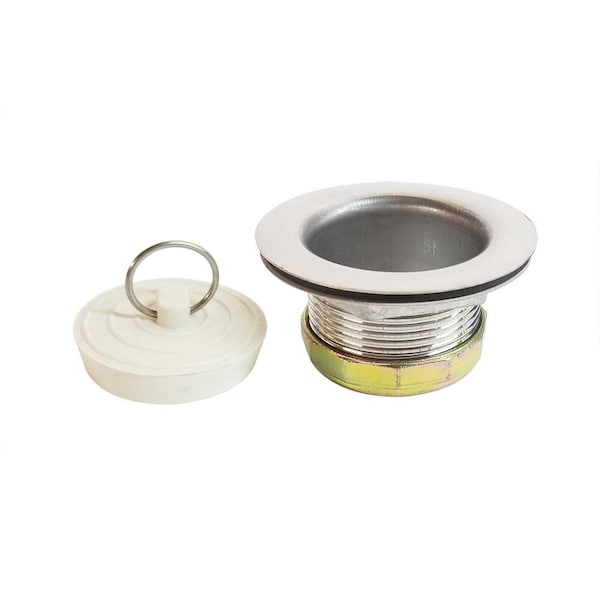 Laundry tub strainer with stopper that fits 2-1/2 opening. Stopper has a metal ring for pull-chain attachment not included and can be used with kitchen, bathroom, or laundry room sinks.