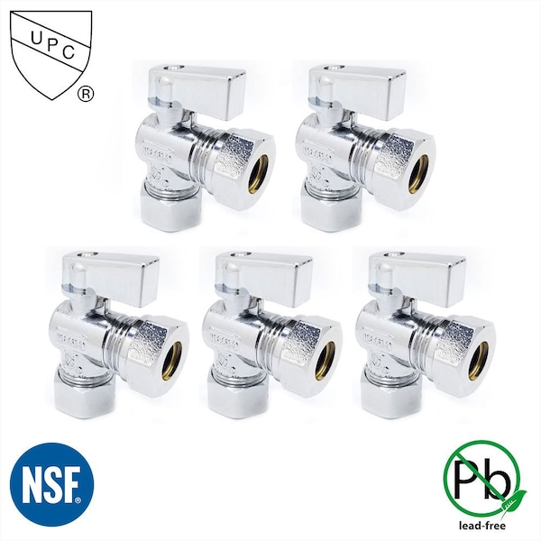 5/8 Inch Comp x 1/2 Inch Slip Joint Quarter-Turn Angle Stop Val
