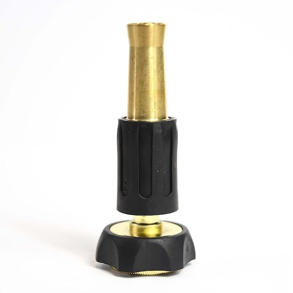 Featuring high quality brass construction, Thrifco's 4 inch adjustable nozzle serves you for a long time and is ideal for a multitude of watering applications as you can control the water pattern with a simple twist. The water spray can be adjusted between a gentle wide stream and a water blast. Simply twist the nozzle to shut water off. A fantastic nozzle for cleaning dust and debris from siding, concrete, walls and patios. Attach with any 3/4 inch regular hose.